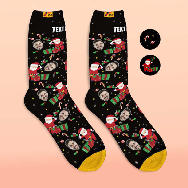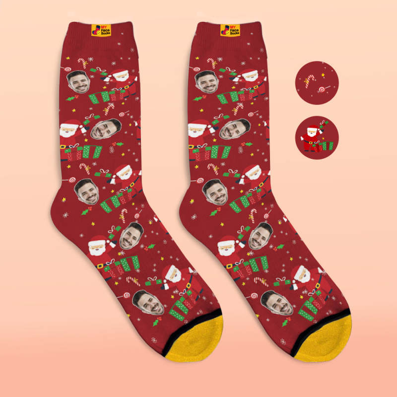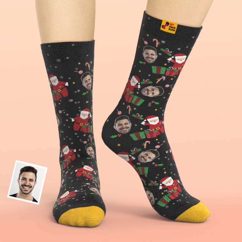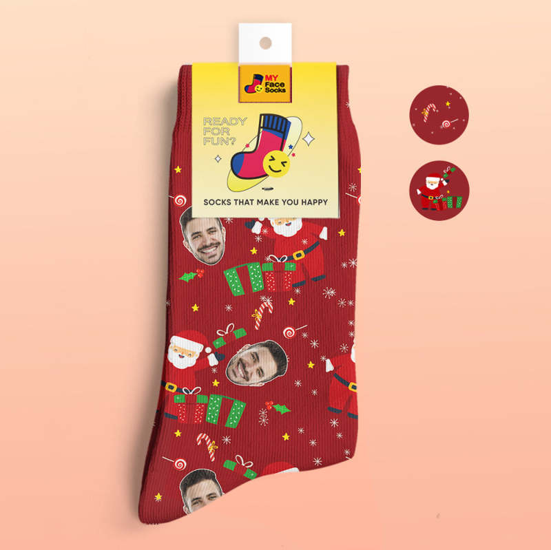 カスタム3Dデジタル印刷ソックス-写真入れ可能な靴下-サンタ面白い顔靴下