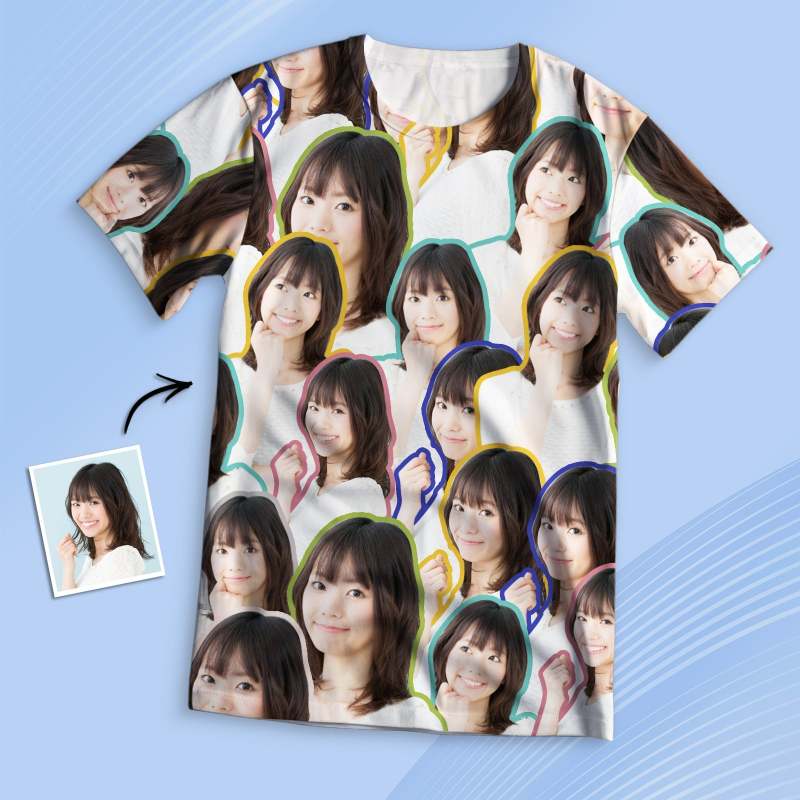 カスタムフォトTシャツ-写真5枚入り可能な男女兼用オリジナルTシャツプレゼント-友達へのおもしろいプレゼント