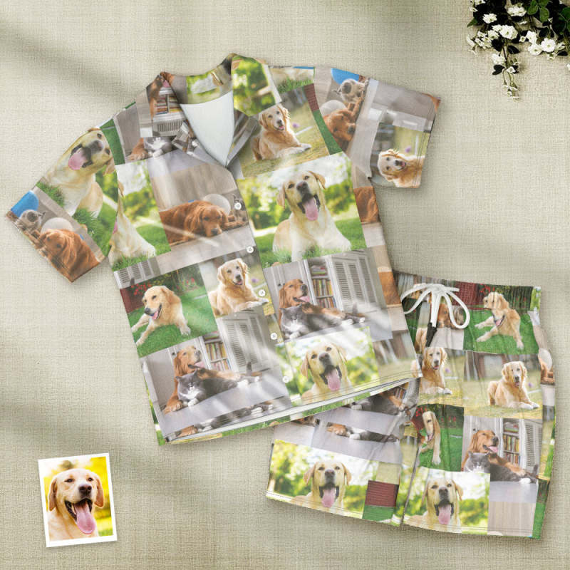 カスタムフォトパジャマ-写真5枚入れ可能なオリジナル半袖パジャマ-夏の涼しいパジャマギフト