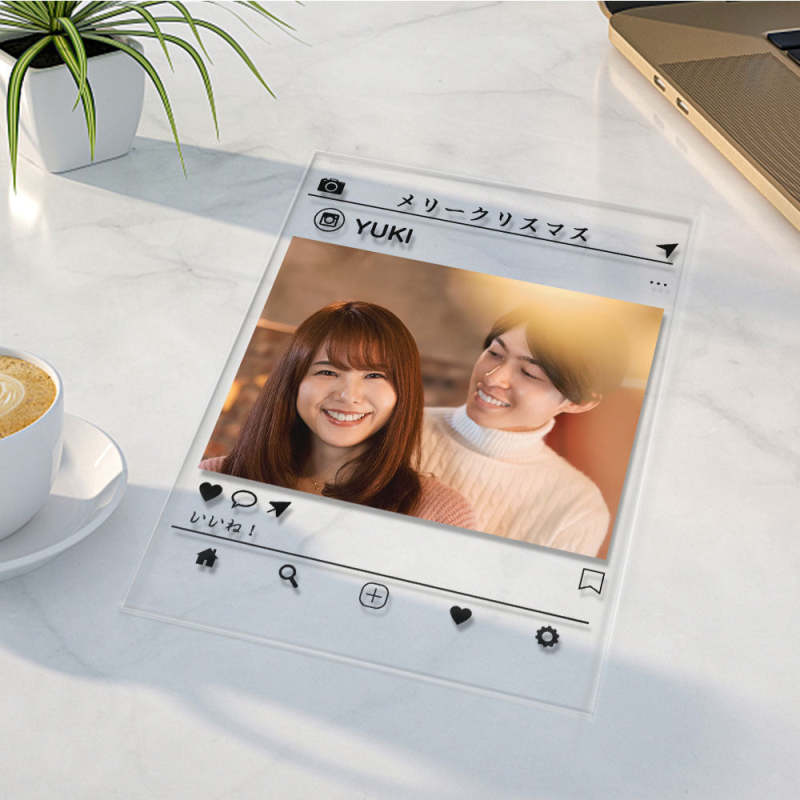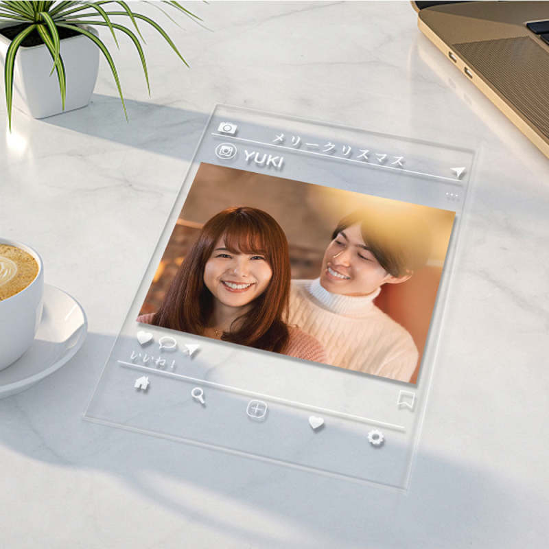 カスタムフォトアクリル製写真立て‐写真と名前とメッセージ入れ可能なメモリーを込めった卓上プラーク飾り-恋人や友達へのプレゼント縦向き