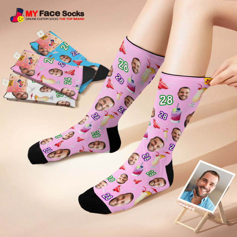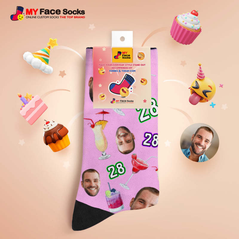 カスタム通気性顔ソックス番号と顔ソックス誕生日のデザートと飲み物
