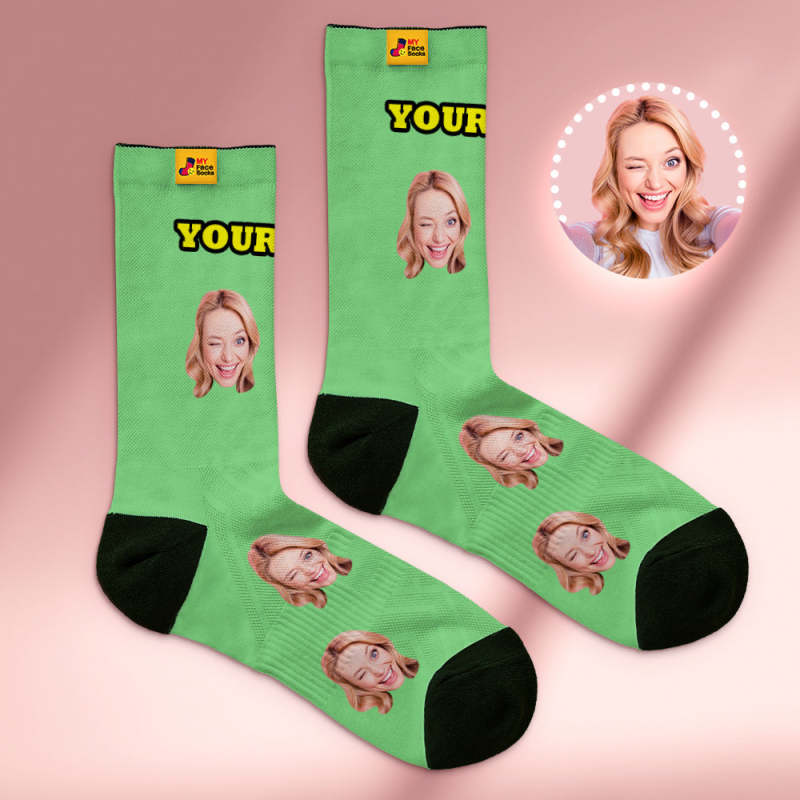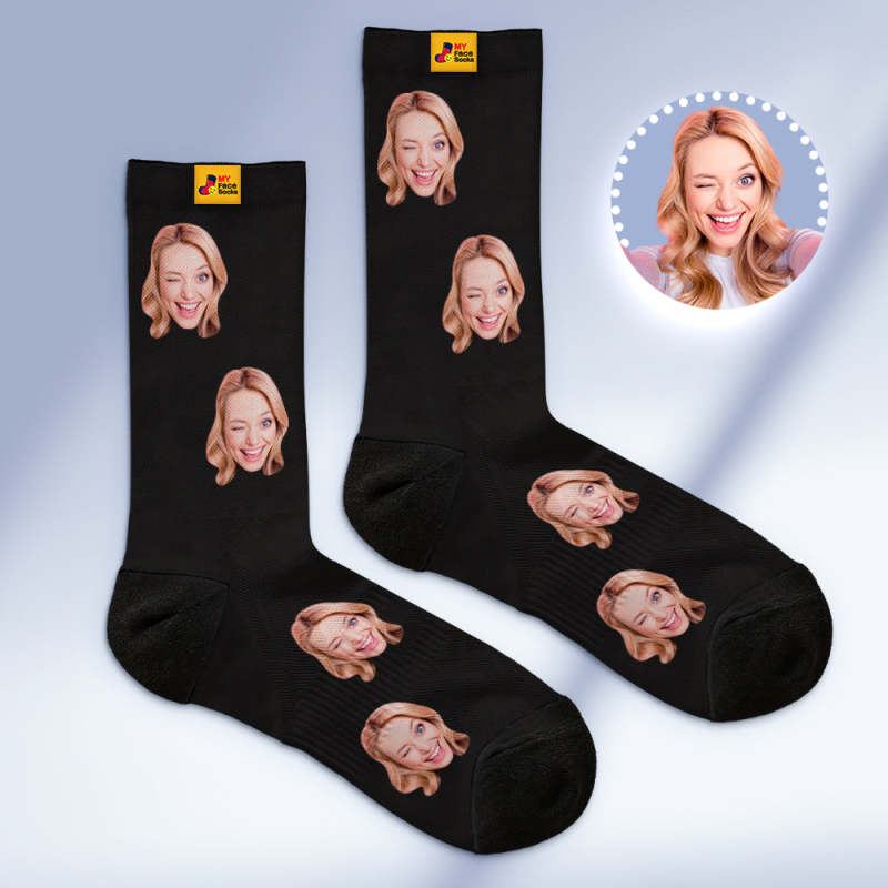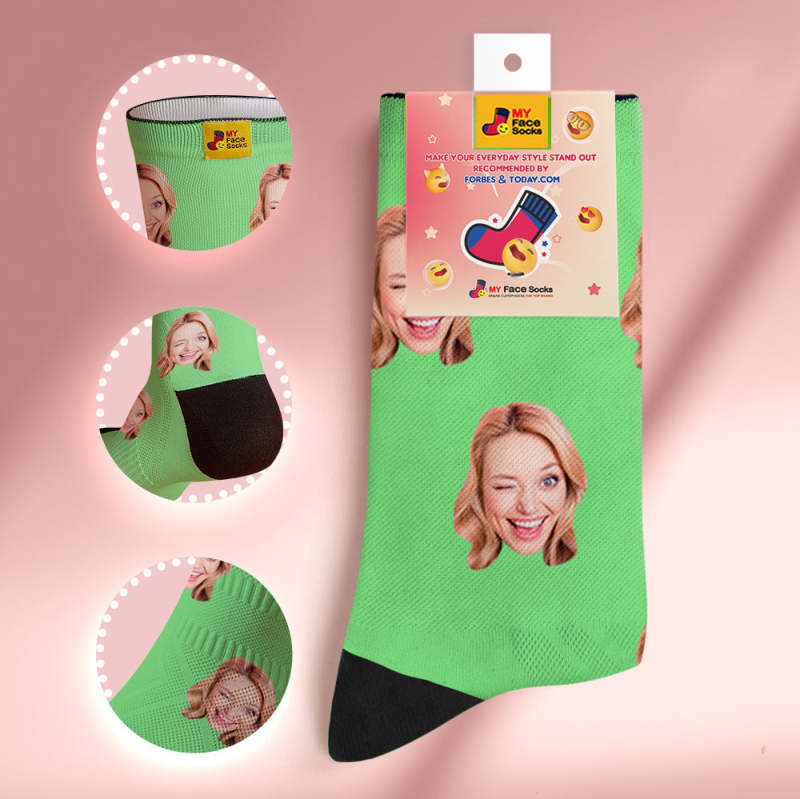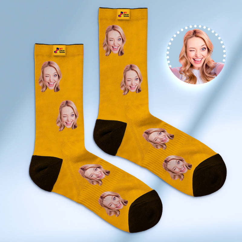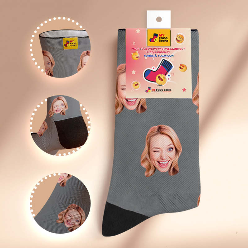 カスタム通気性フェイスソックス - 写真とテキスト入れ可能なオリジナル靴下 - ブルー