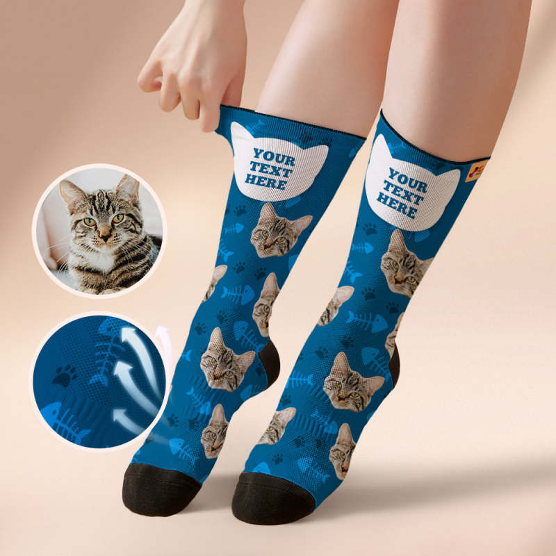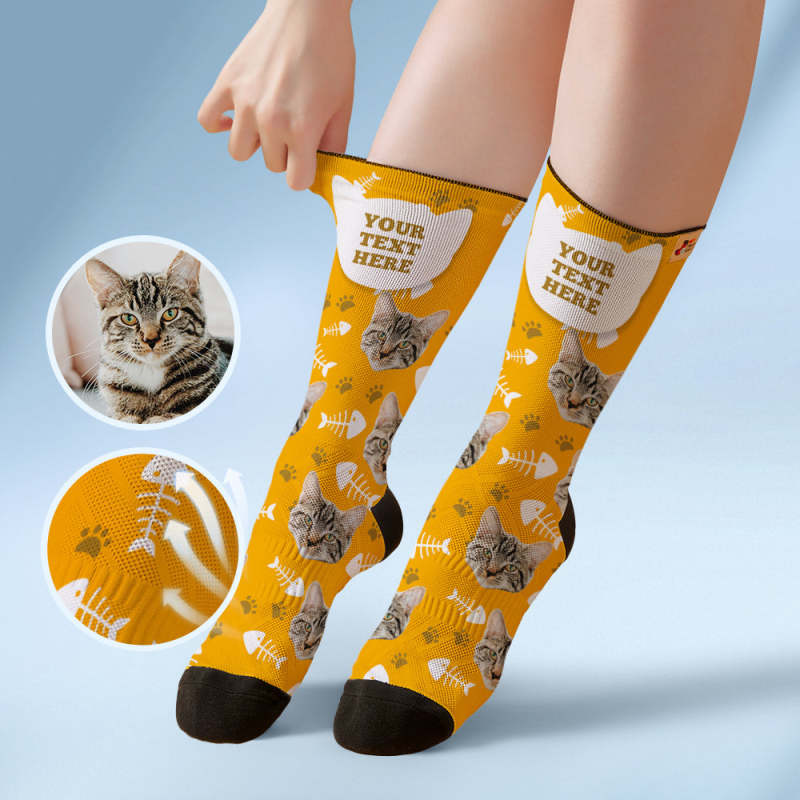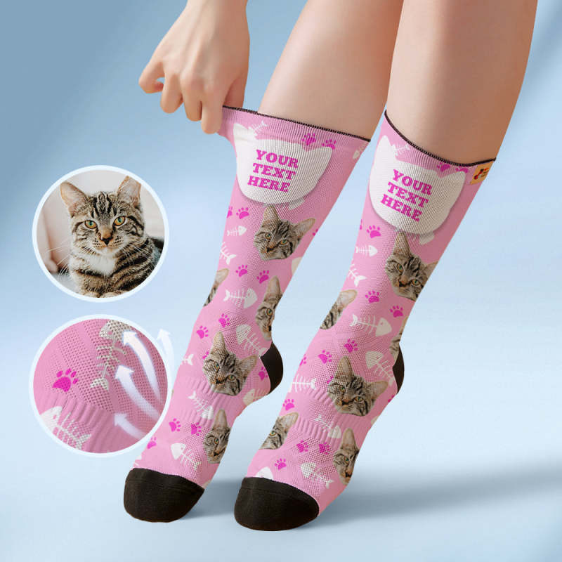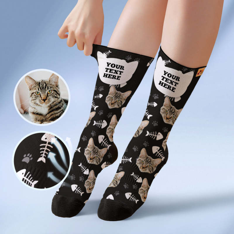 カスタム通気性フェイスソックス - 写真とテキスト入れ可能なオリジナル靴下ネコ - 黒
