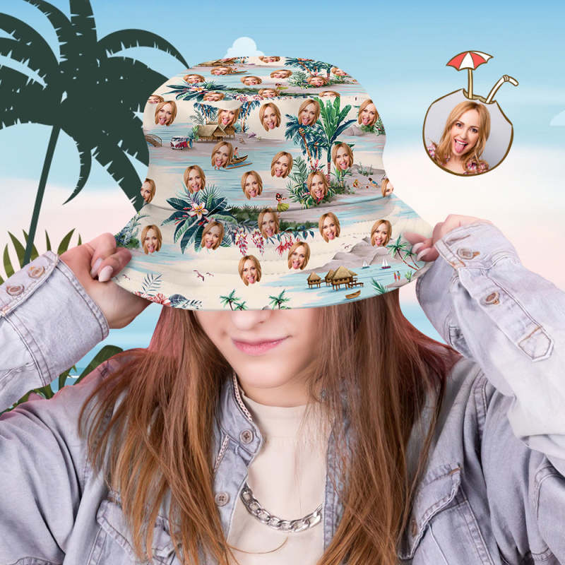 カスタム日除け帽-写真入り可能なサマー漁師帽-ペット写真-シービュー