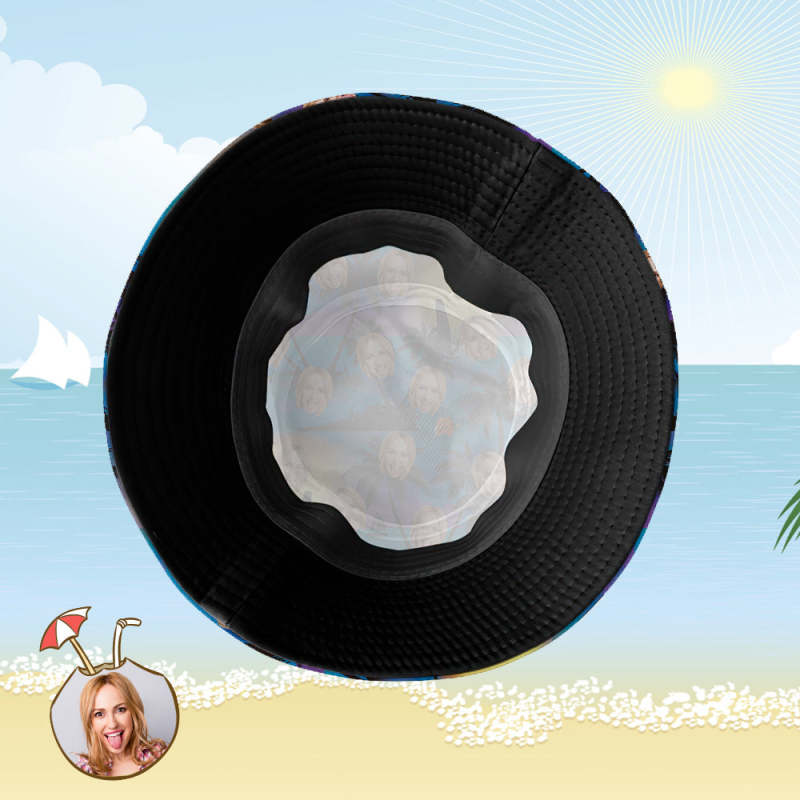 カスタム日除け帽-写真入り可能なサマー漁師帽-ペット写真-夕暮れの海辺