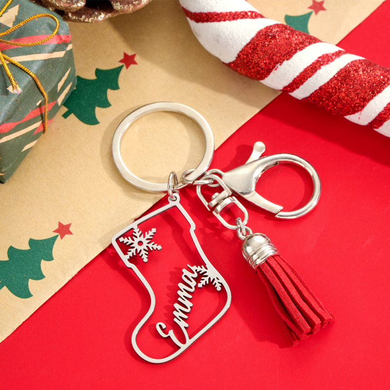 カスタムクリスマスキーホルダー パーソナライズされたステンレススチールキーリング 名前刻印入り 彼へのホリデーギフト