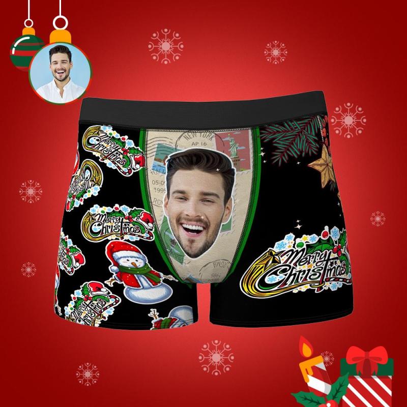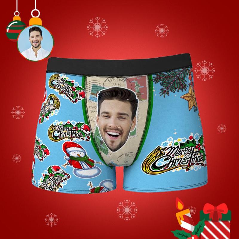 カスタムフォトボクサーパンツ-写真入り可能な雪だるま柄下着夫や彼氏へのクリスマスプレゼント