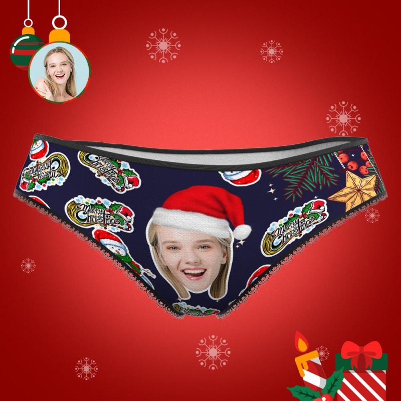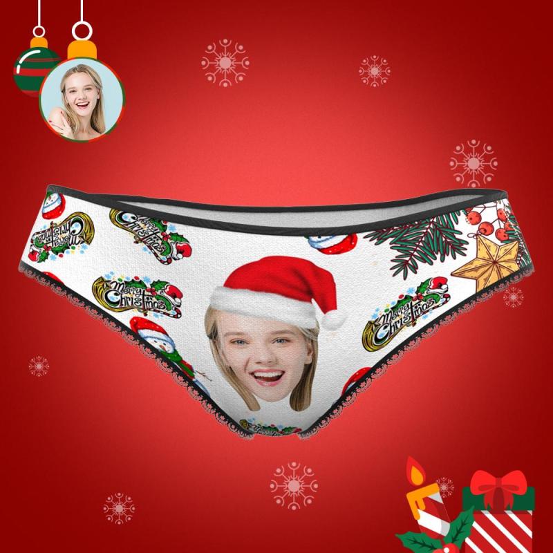カスタムフォトパンティ-写真入り可能な雪だるま柄下着妻や彼女へのクリスマスプレゼント