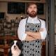キッチンの周りにカスタムエプロンを着て、料理をして、服の見栄えを良くしてください。