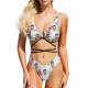 カスタムフェイスビキニ-女性用チェストストラップ水着パーソナライズされた写真の体型カバー彼女や妻へのビキニハワイアンスタイルギフト - ピンクの花