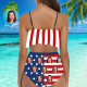 カスタムフェイスビキニ-レディースフリルサマービキニ-ハイウエスト水着ギフト彼女へ-アメリカ国旗