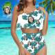 カスタムフェイスビキニ-レディースフリルサマービキニ-ハイウエスト水着ギフト彼女へ-大きな葉ー