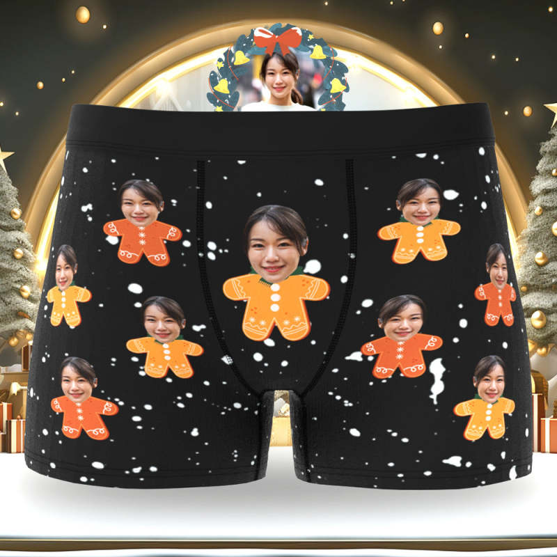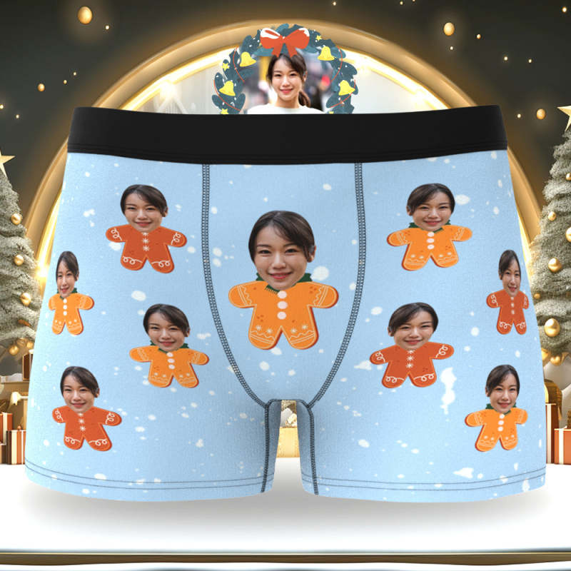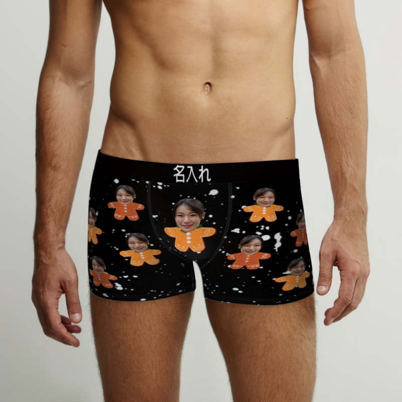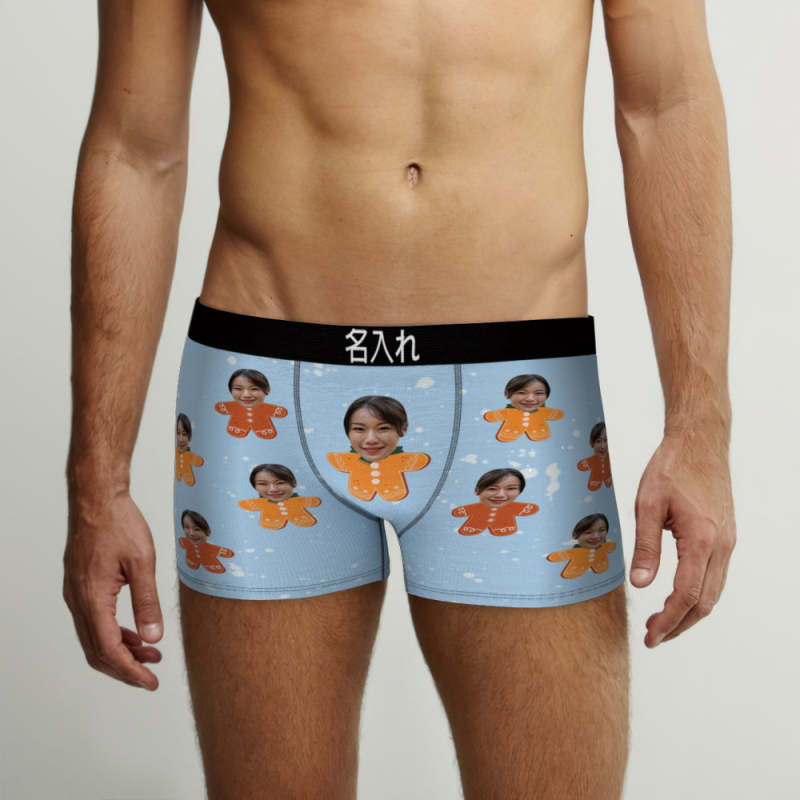 カスタム顔ボクサーパンツ-顔の写真入れ可能なオリジナルフォト下着ショーツクリスマスギフト-クリスマスジンジャーマン