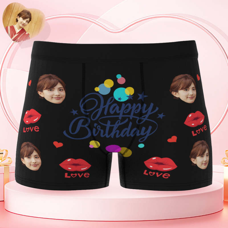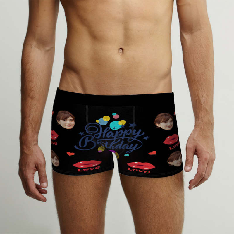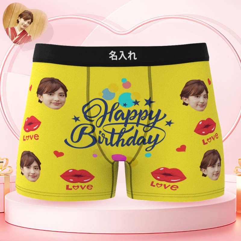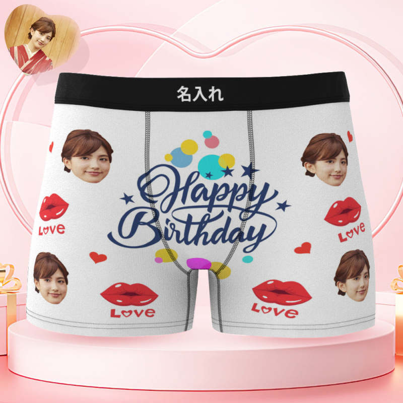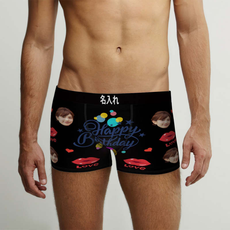 カスタム誕生日ボクサーパンツ-顔の写真入れ可能なオリジナルフォト下着ショーツギフト-誕生日おめでとう