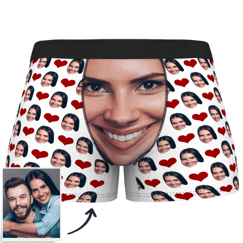 カスタムフェイスボクサーパンツ-写真入り可能なオリジナル下着ラブハートバレンタインギフト