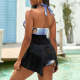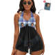 カスタムフェイス水着-写真入れ可能なレディース用青い格柄のホルターネック体型カバー2点セット