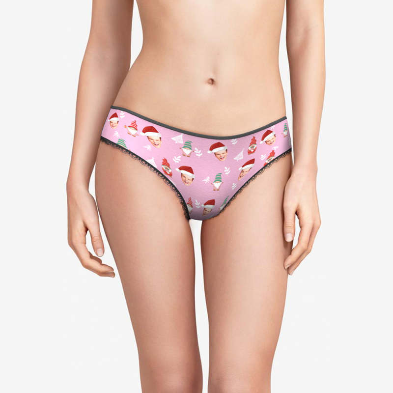 カスタムフォトパンティー-写真入れ可能なノーム柄のクリスマスピンクの女性用パンティーショーツギフト