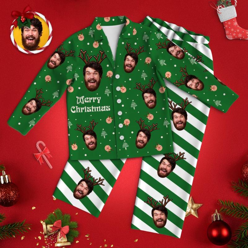 カスタムフェイスクリスマス長袖パジャマセットエルク