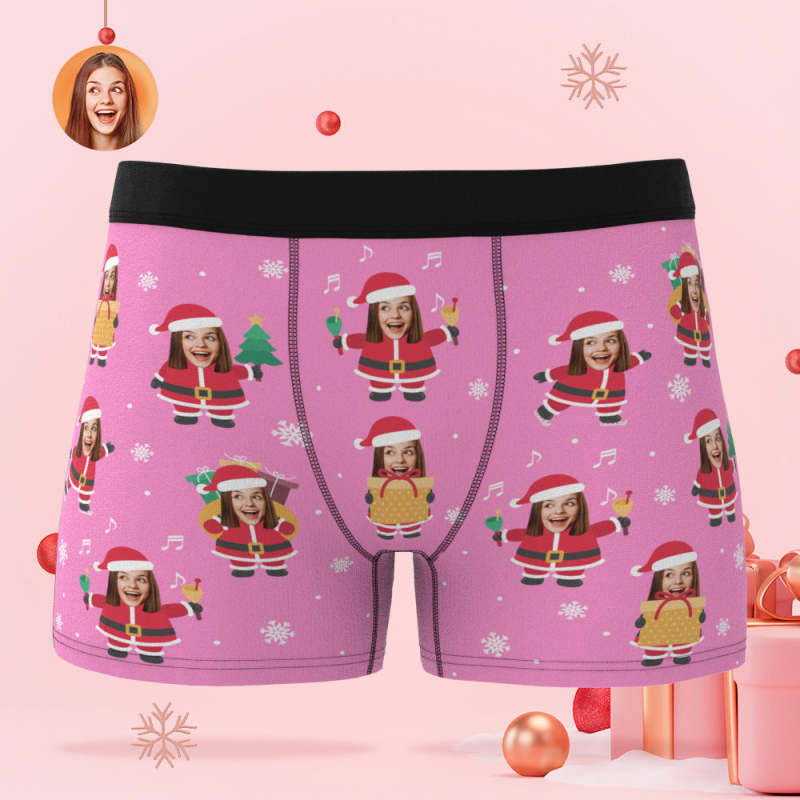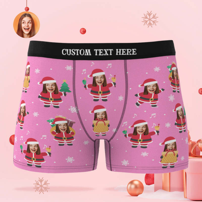 カスタムフォトボクサー-写真入れ可能なサンタクロース柄のクリスマスピンクのボクサーパンツギフト
