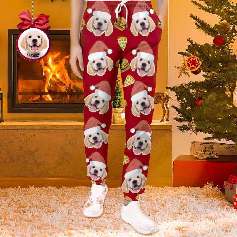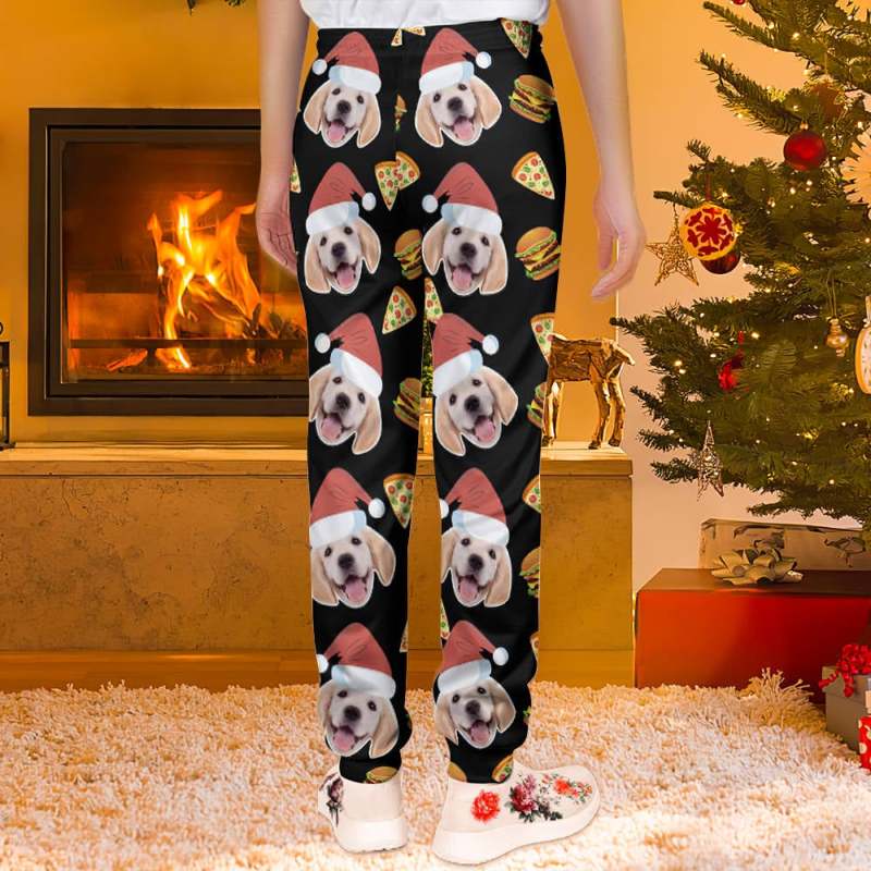 カスタムフェイススウェットパンツ - 写真入れ可能な男女兼用ジョガーパンツ - ピザとバーガー