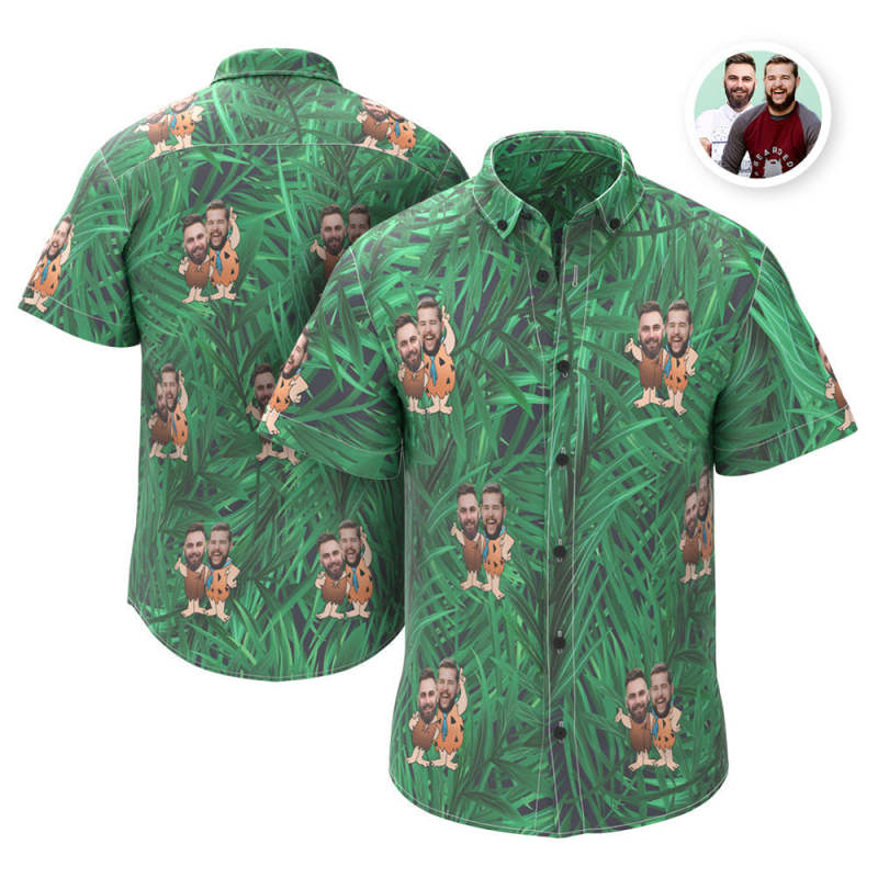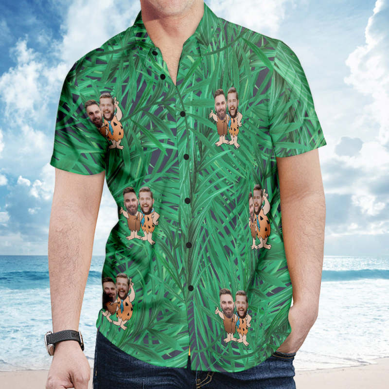 カスタムフェイスハワイアンシャツ - 写真入れ可能なオリジナルアロハシャツ - 緑の葉