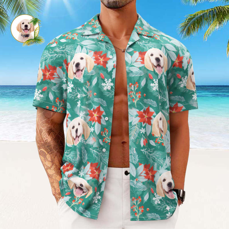 カスタムフォトアロハシャツ-写真入り可能なオリジナルクリスマスアロハシャツギフト-緑の葉