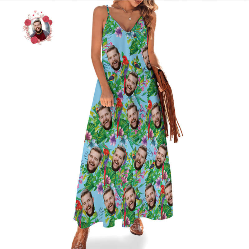 カスタムフェイスハワイアンスタイルロングスカート&シャツ家族コーデ - 七色のオウム柄