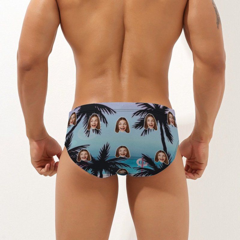 カスタムフェイス男性用水泳パンツ - 顔の写真入れ可能な三角形の水着用パンツ - シュロ
