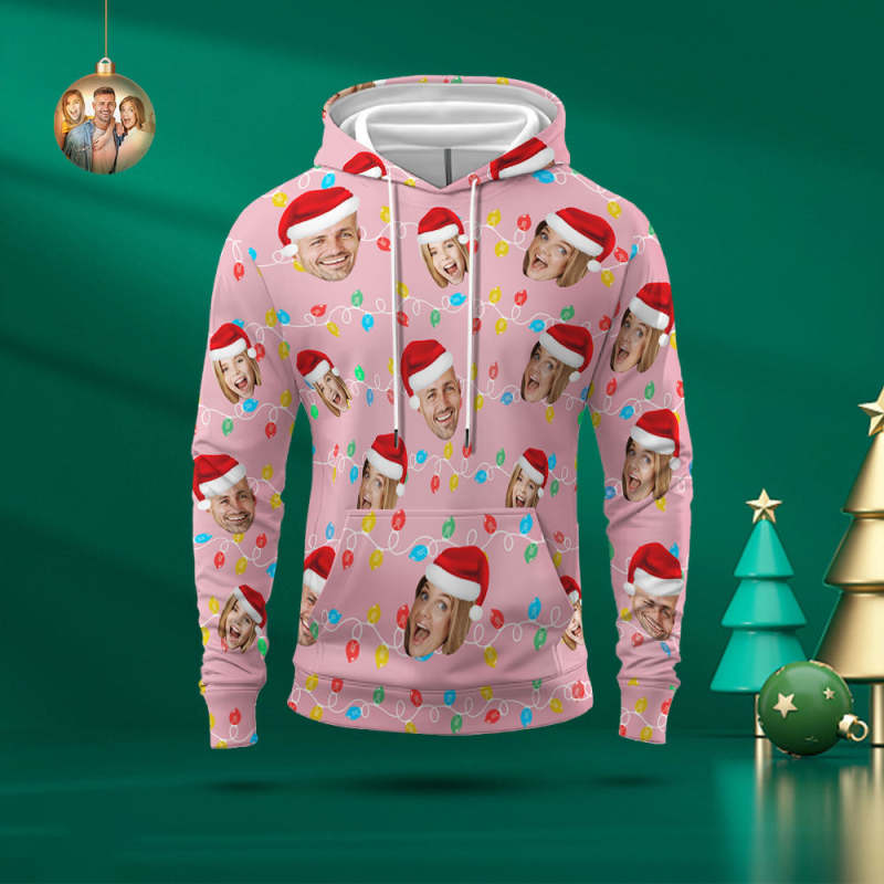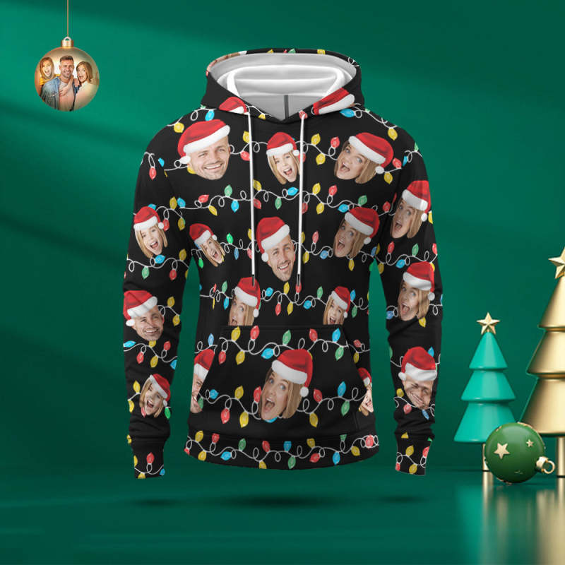 カスタムフェイスパーカーのオリジナル写真入れクリスマスのライト男女兼用スウェット