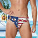 カスタムフェイス男性用水泳パンツ - 顔の写真入れ可能な三角形の水着用パンツ - アメリカ国旗