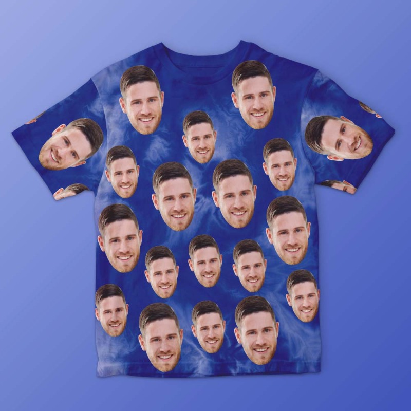 オーダーメイド男性用顔Tシャツ-顔の写真入れ可能な面白い絞り染めTシャツ-ダークブルー