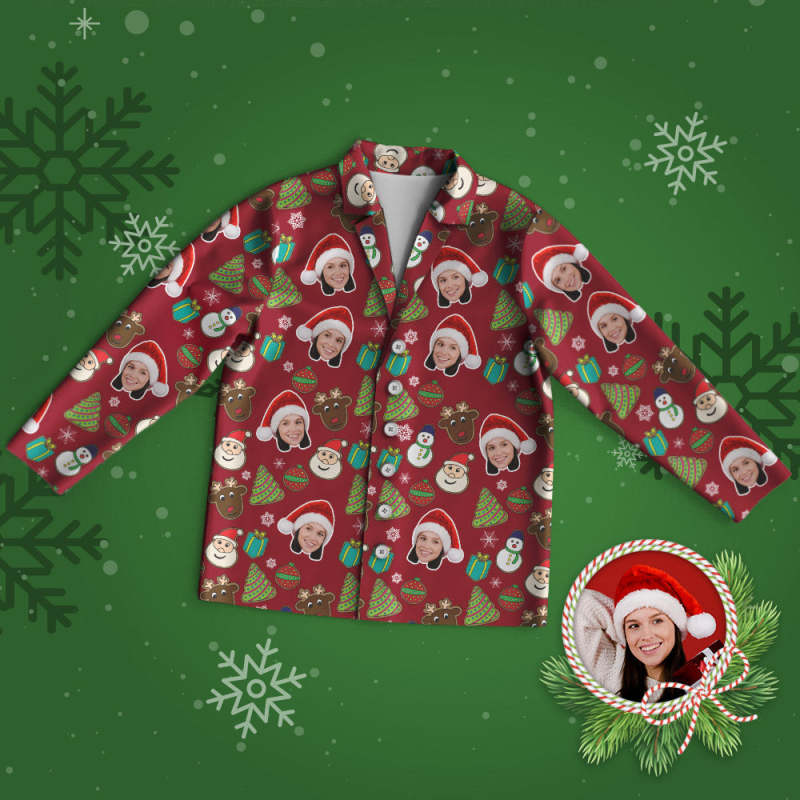 カスタムフォトパジャマ-写真入れ可能なオリジナルクリスマスパジャマギフト-赤