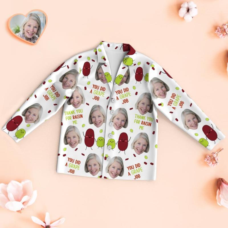 カスタムフェイスパジャマ-パーソナライズされた写真パジャマセットお母さんへのぶどう柄のギフト