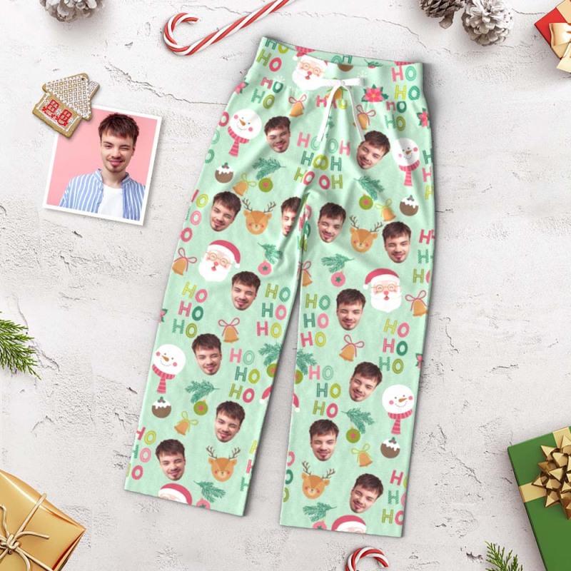 カスタムフォトパジャマパンツ-写真入れ可能なオリジナルクリスマスパジャマパンツギフト-サンタクロースと雪だるま