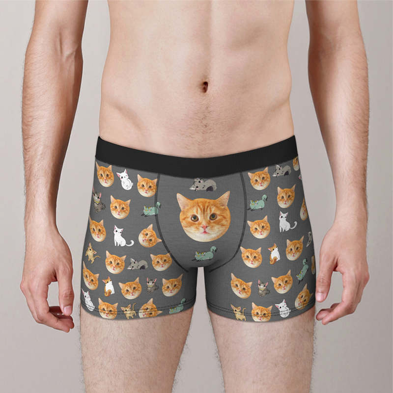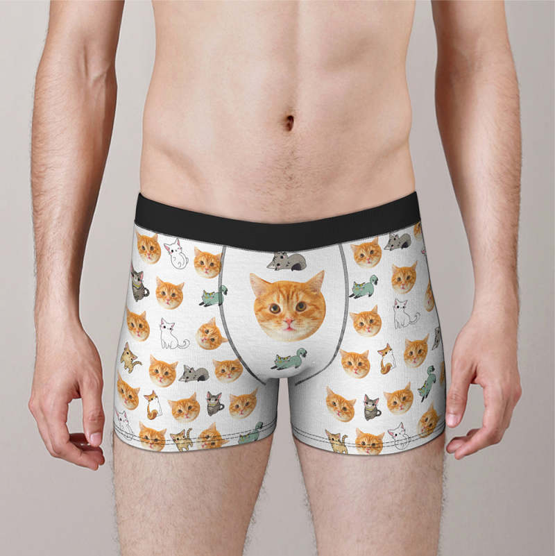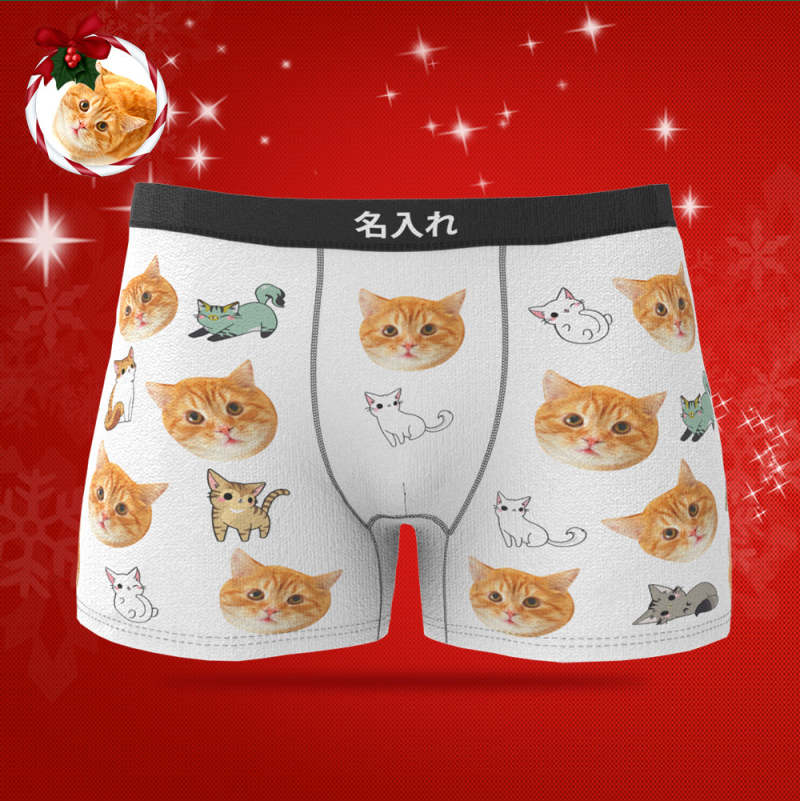 カスタムフォトボクサーパンツ-写真入れ可能なオリジナルクリスマス顔下着ショーツギフト-かわいいネコ柄