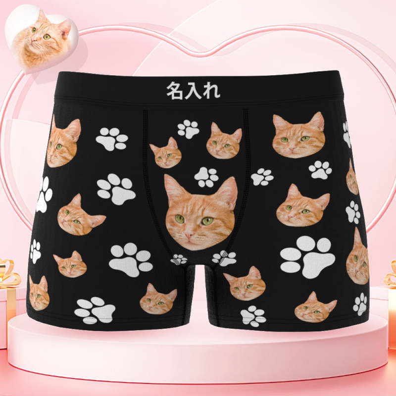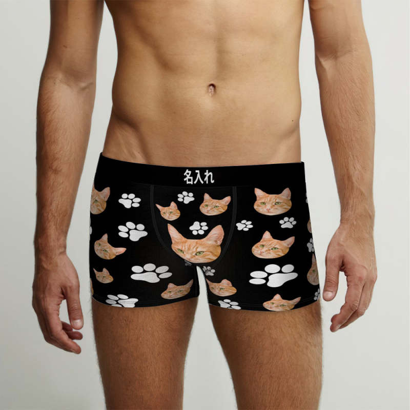 カスタムフォトボクサーパンツ-可愛いペット写真入れ可能なオリジナル顔下着ショーツギフト-可愛い爪柄