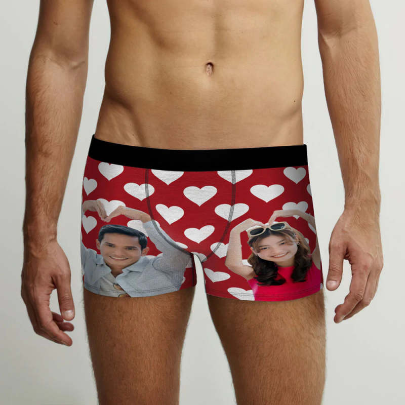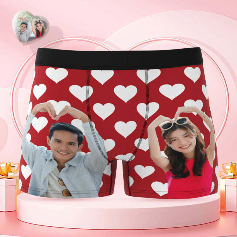 カスタムフォトボクサーパンツ-カップル写真入れ可能なオリジナルバレンタイン顔下着ショーツギフト-恋人へ