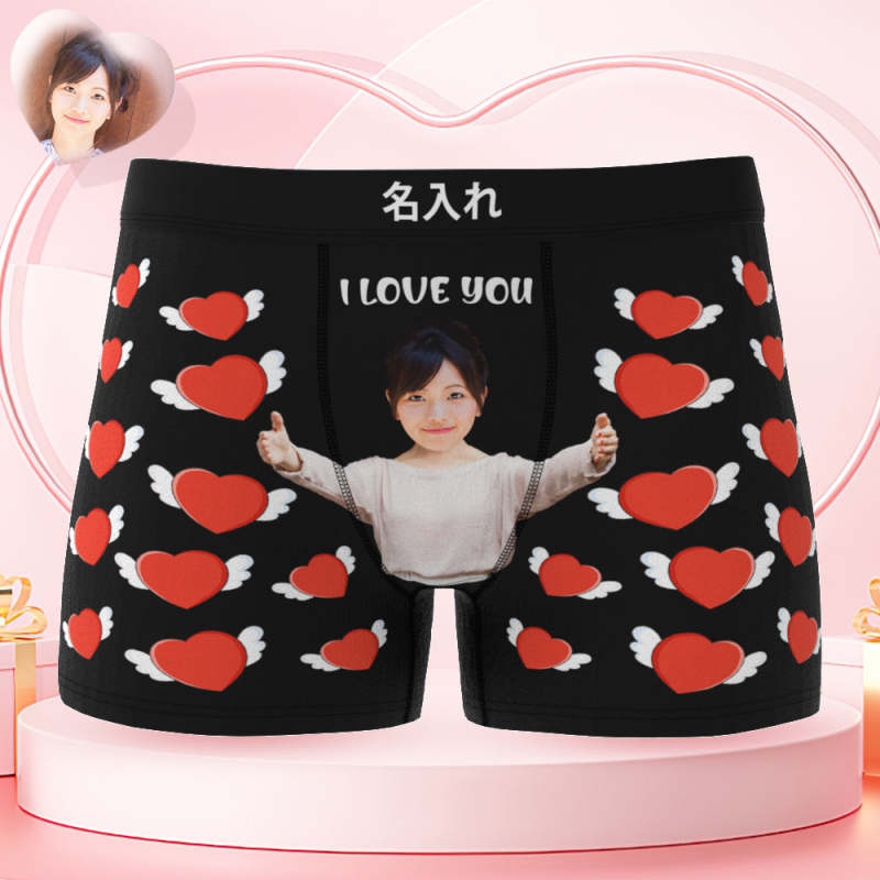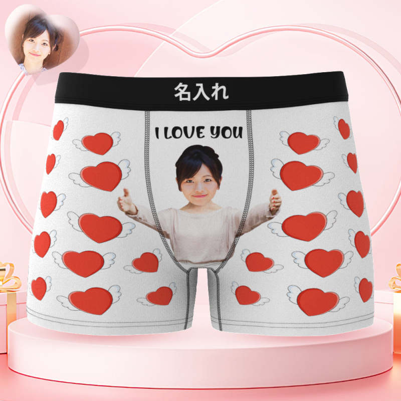 カスタムフォトボクサーパンツ-写真入れ可能なオリジナル顔下着ショーツギフト-愛してる