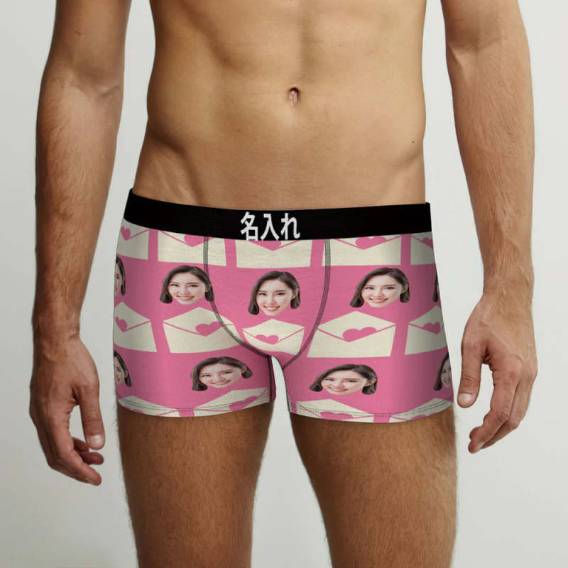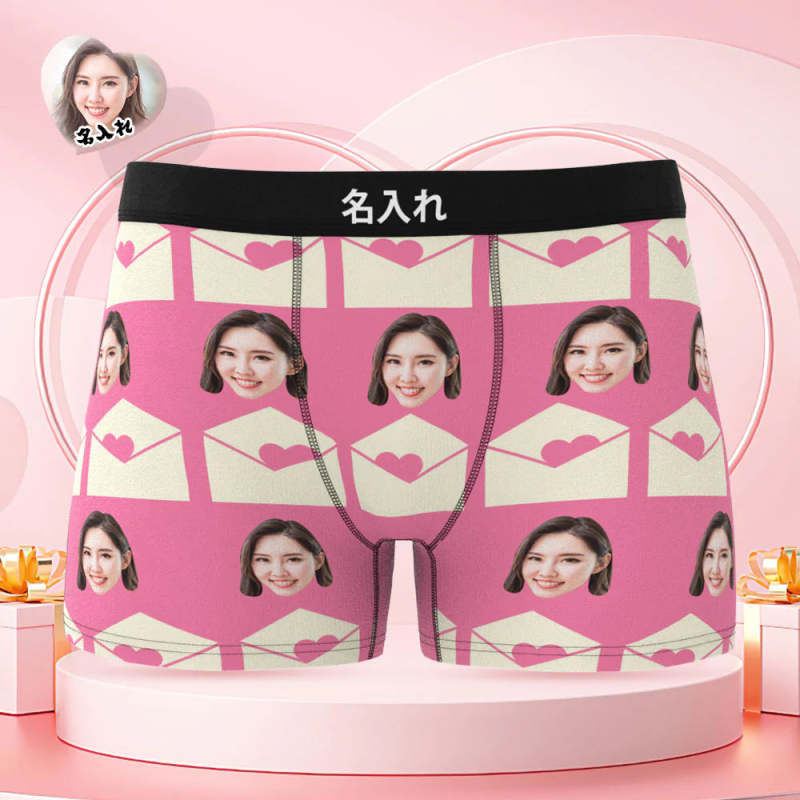 カスタムフォトボクサーパンツ-写真入れ可能なオリジナルバレンタイン顔下着ショーツギフト-ラブレタ柄