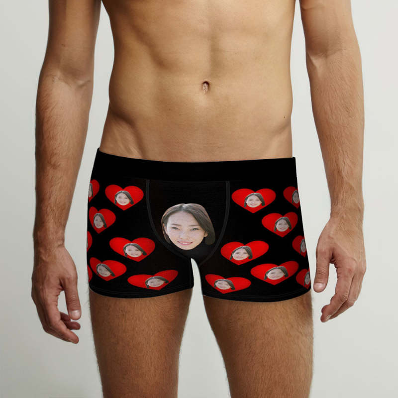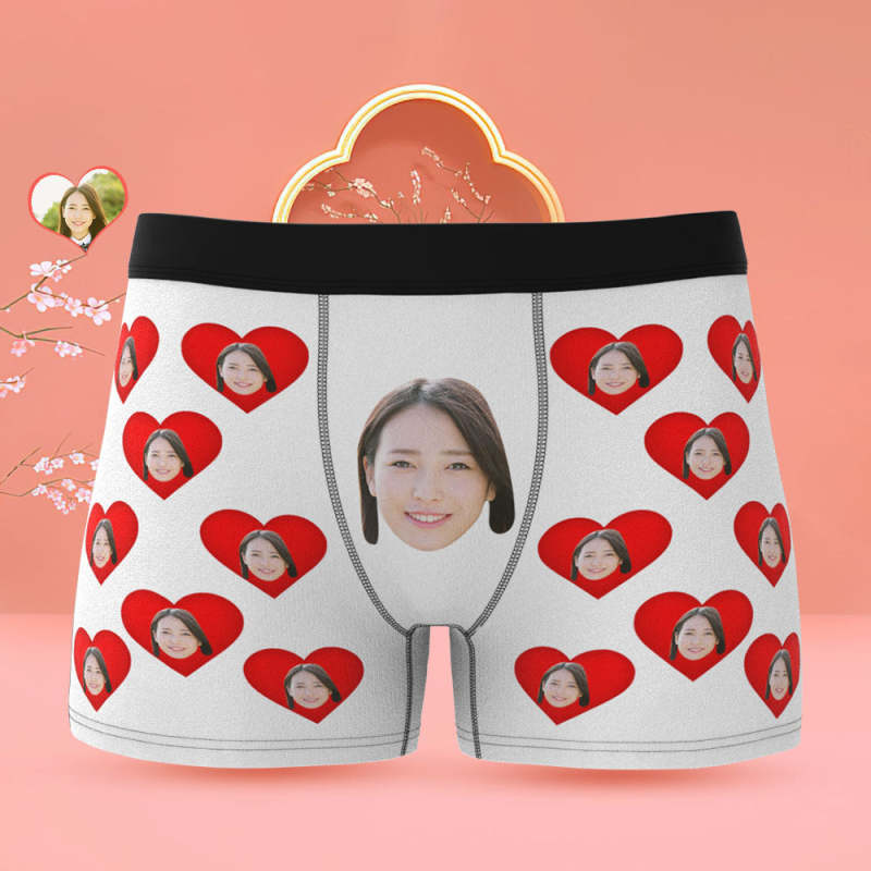 カスタムフォトボクサーパンツ-写真入れ可能なオリジナル顔下着ショーツギフト-ハート形の写真だらけ