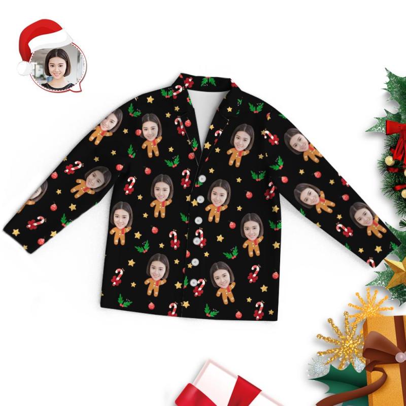 カスタムフォトパジャマ-写真入り可能なオリジナルクリスマスパジャマ-ジンジャーブレッド人