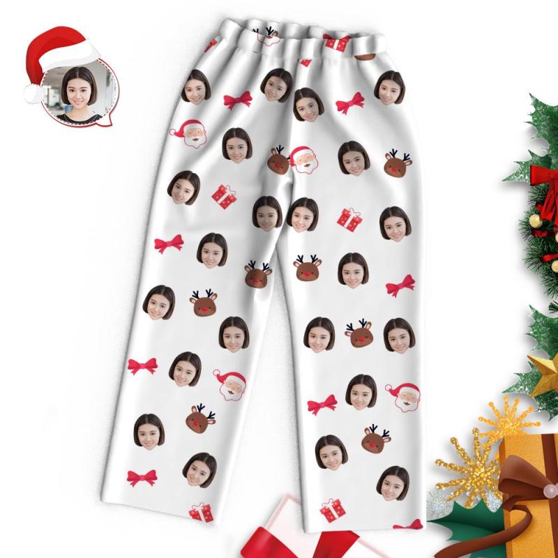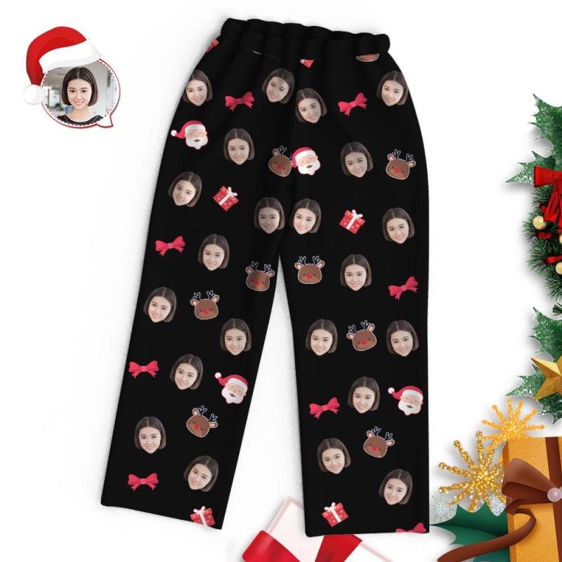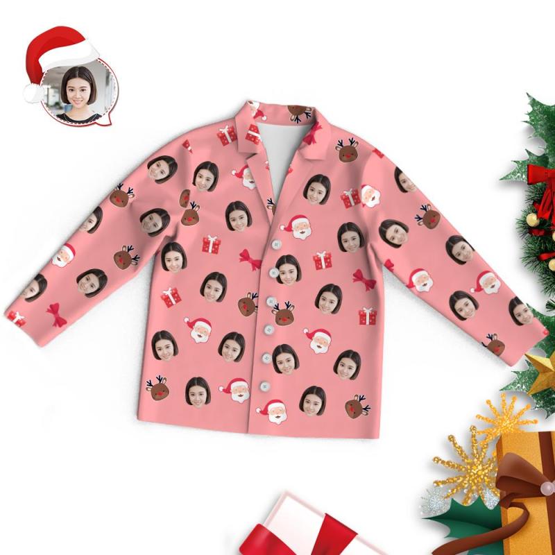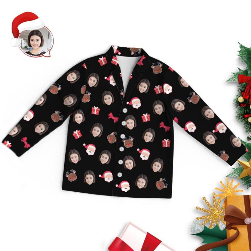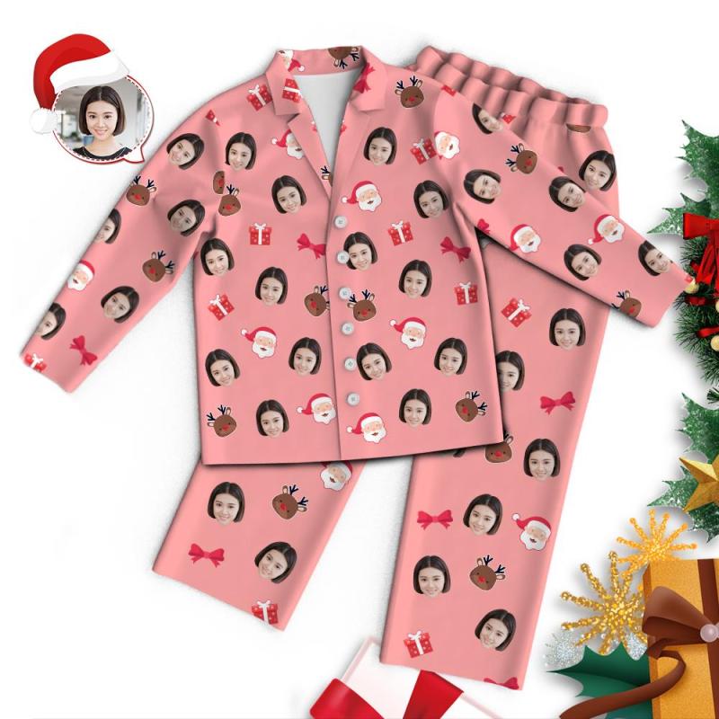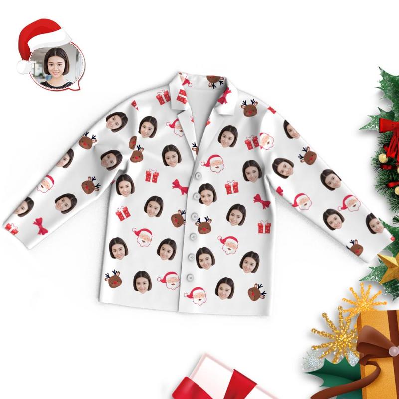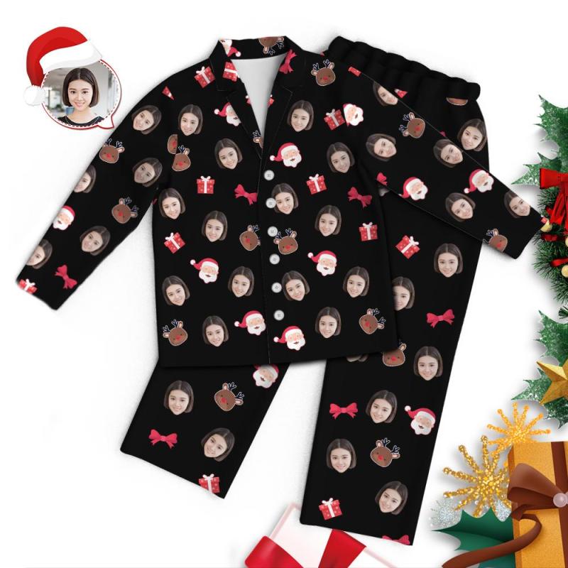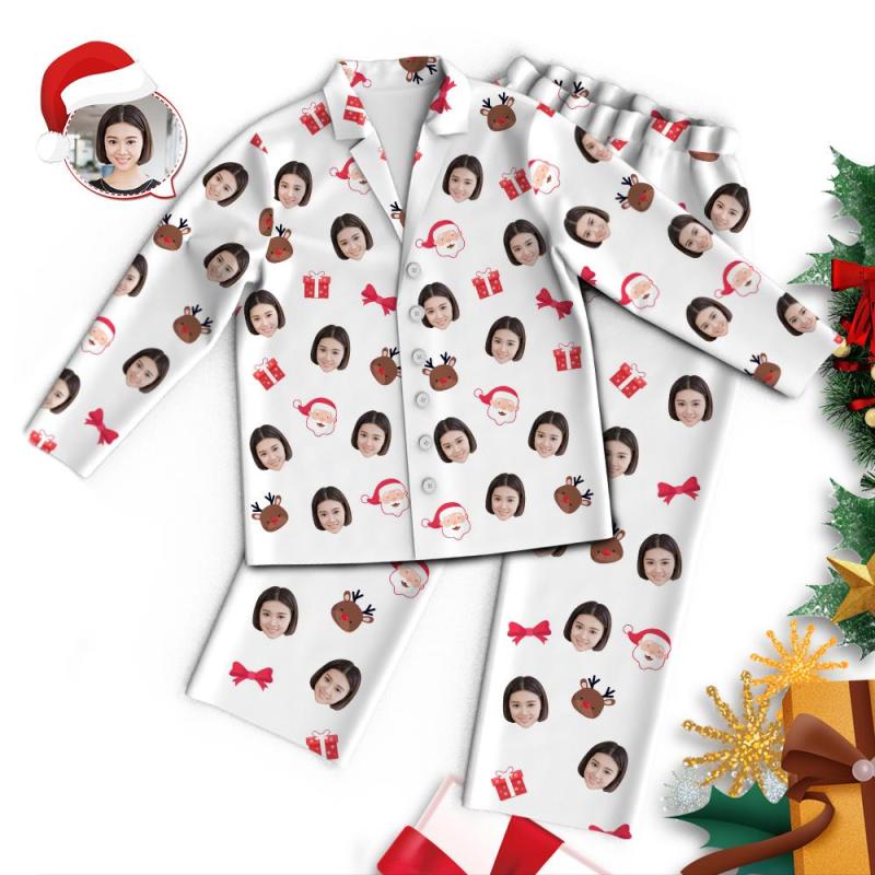 カスタムフォトパジャマ-写真入り可能なオリジナルクリスマスパジャマ-サンタクロースとトナカイ