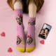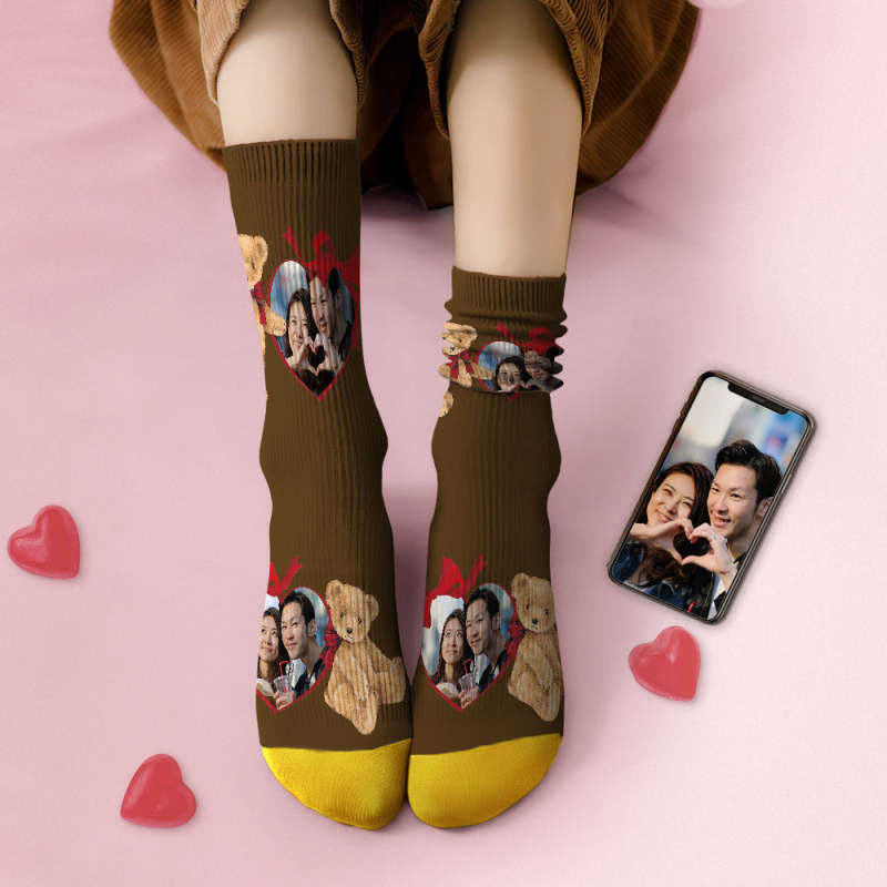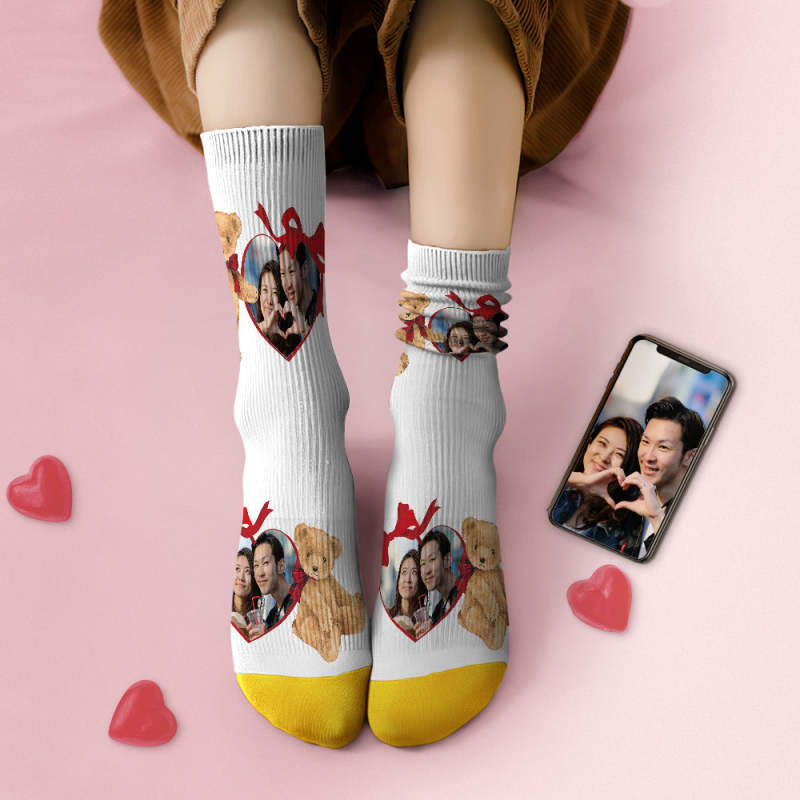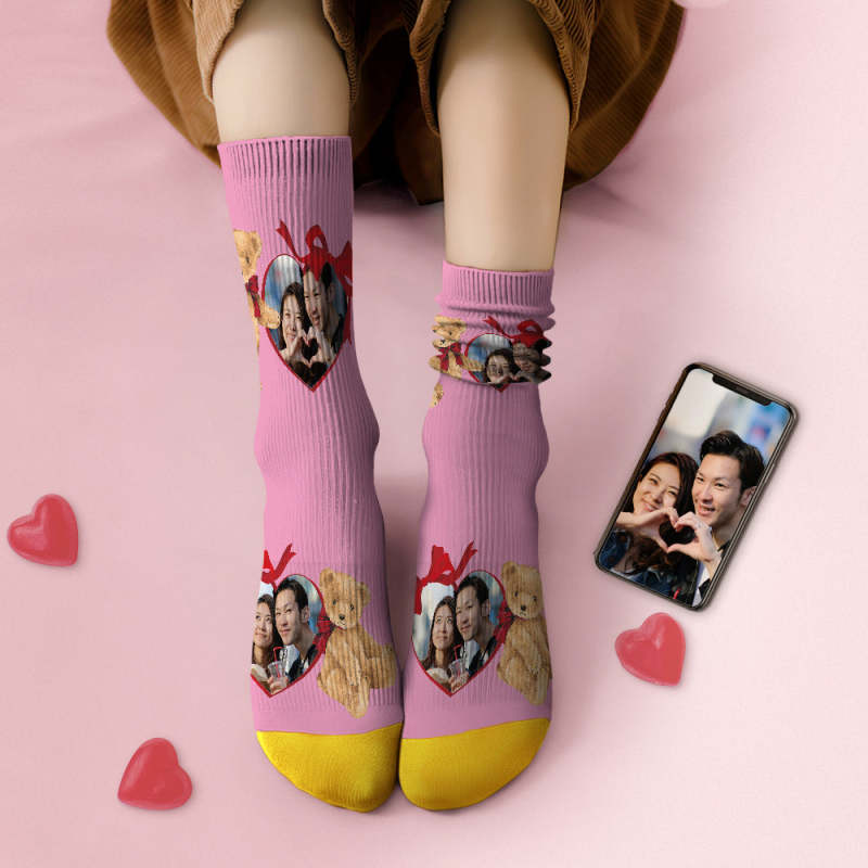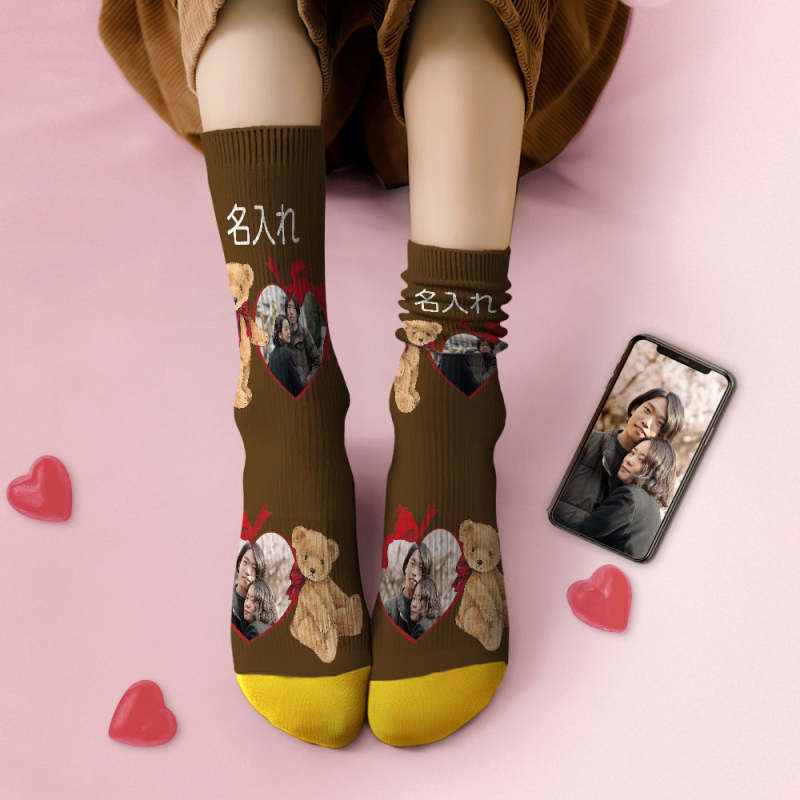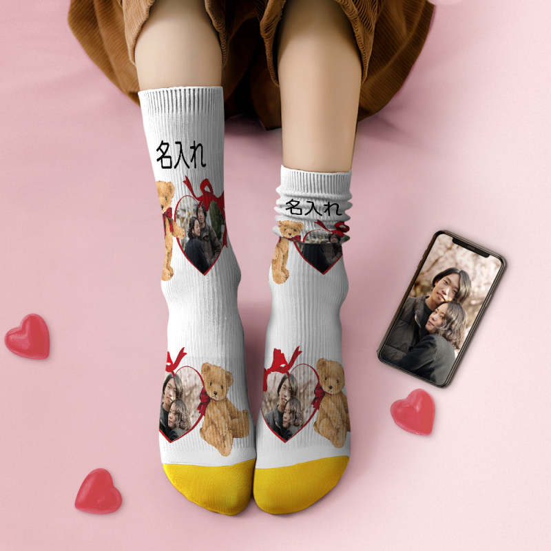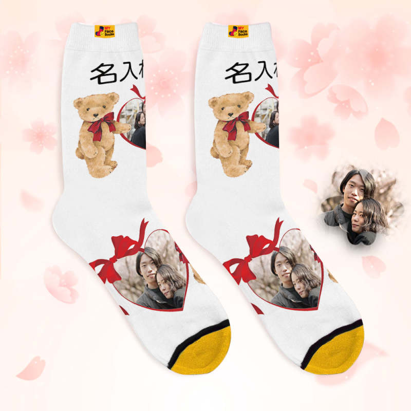 カスタム3Dデジタル印刷ソックス-写真と名入れ可能な靴下プレゼント-リボンのこぐま柄
