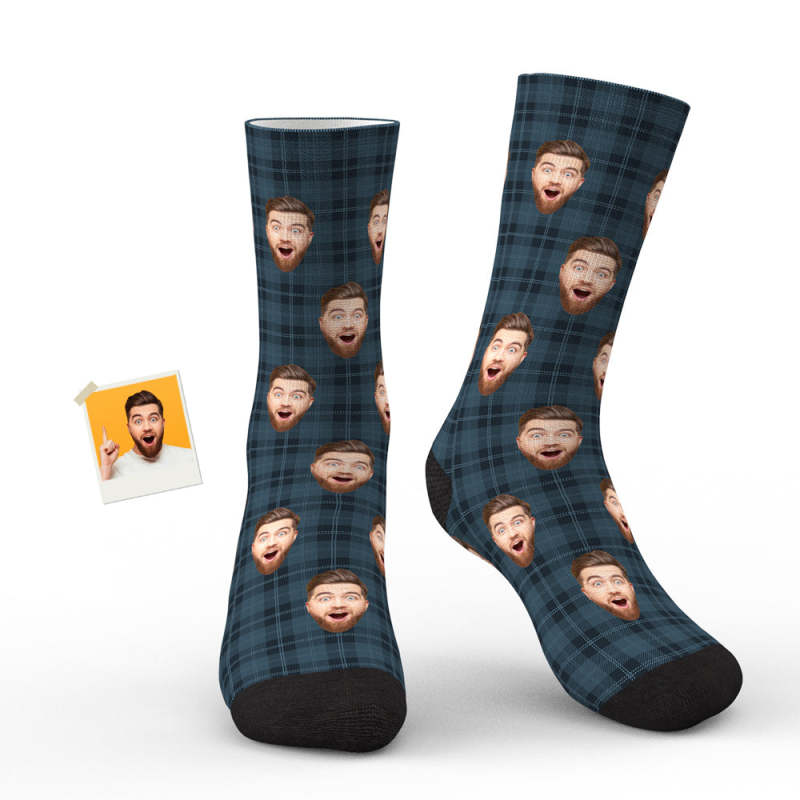 カスタムフェイスソックス-写真入れ可能なオリジナル靴下 - 格子状模様