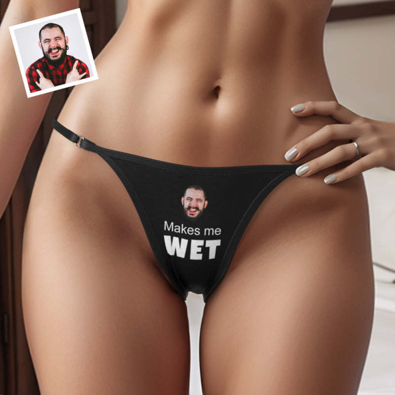 カスタム顔リングリンクされたパンティ - 私を濡らすパーソナライズされた写真Tバックショーツ バレンタインデー ギフト