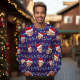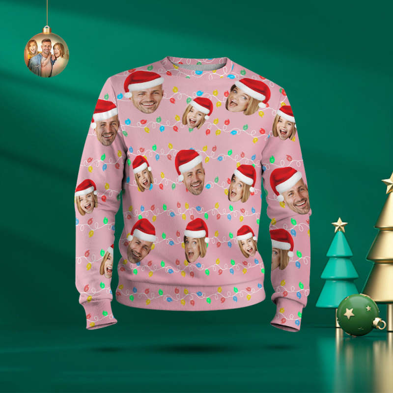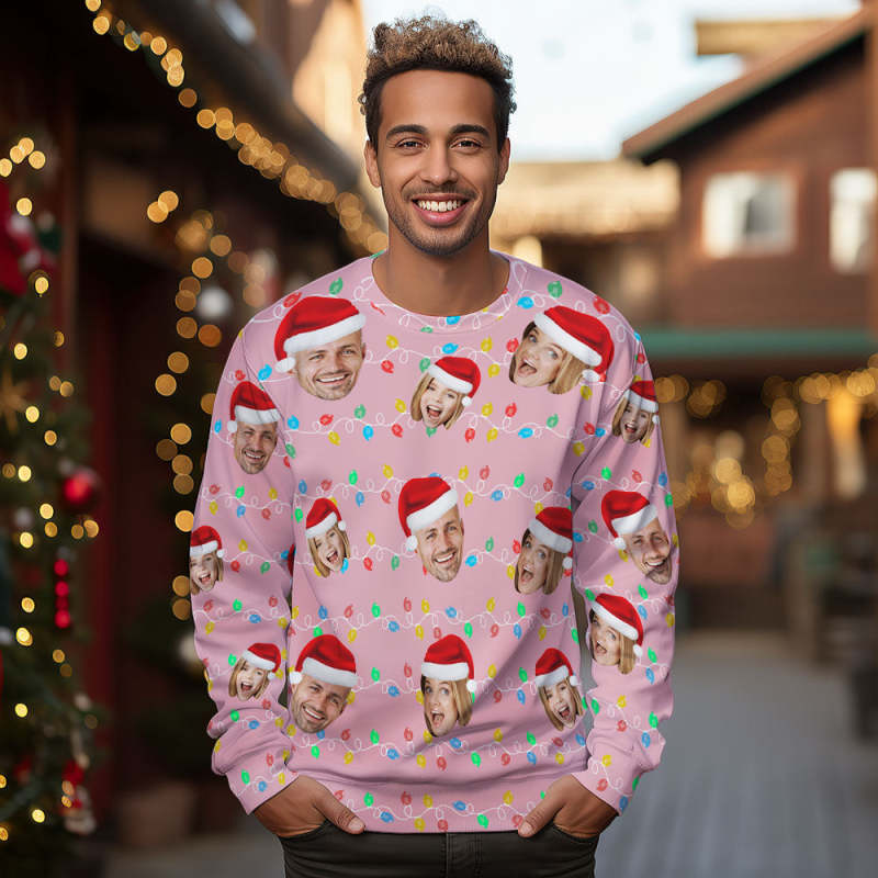カスタム顔ラウンドネックパーカーパーソナライズされた写真入れ可能なクリスマスライト柄ユニセックススウェット