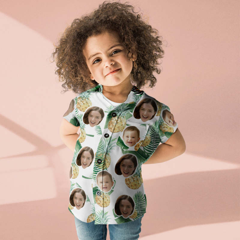 カスタムフェイスシャツ-写真入れ可能な女性用アロハシャツプレゼント-母の日ギフトパイナップル