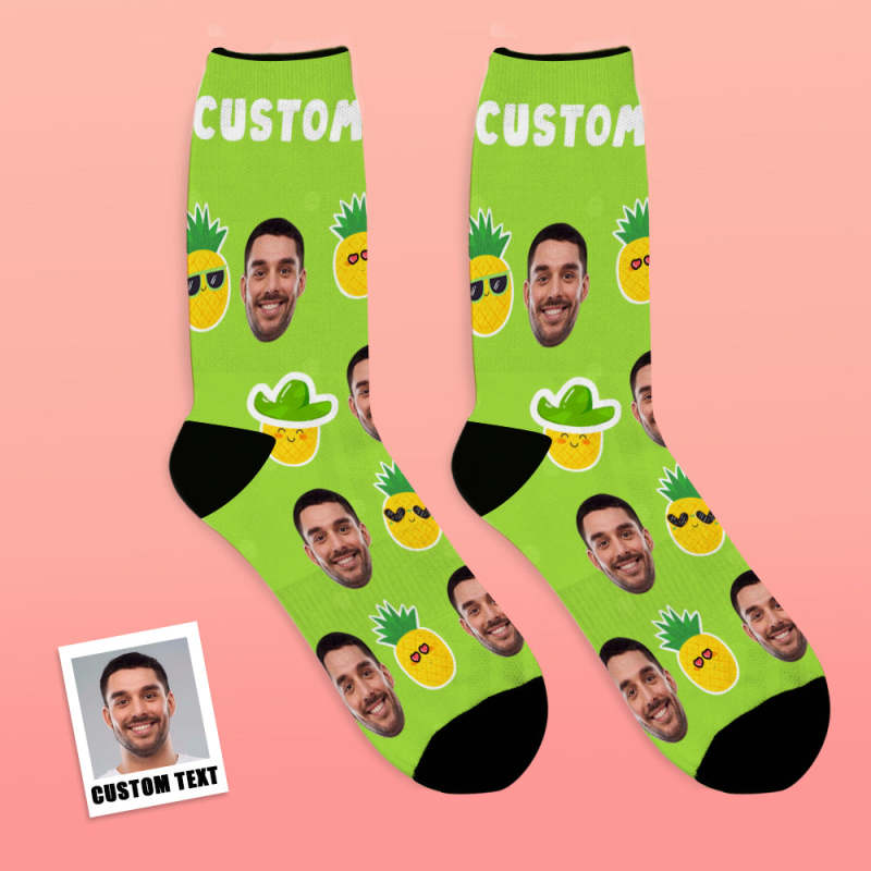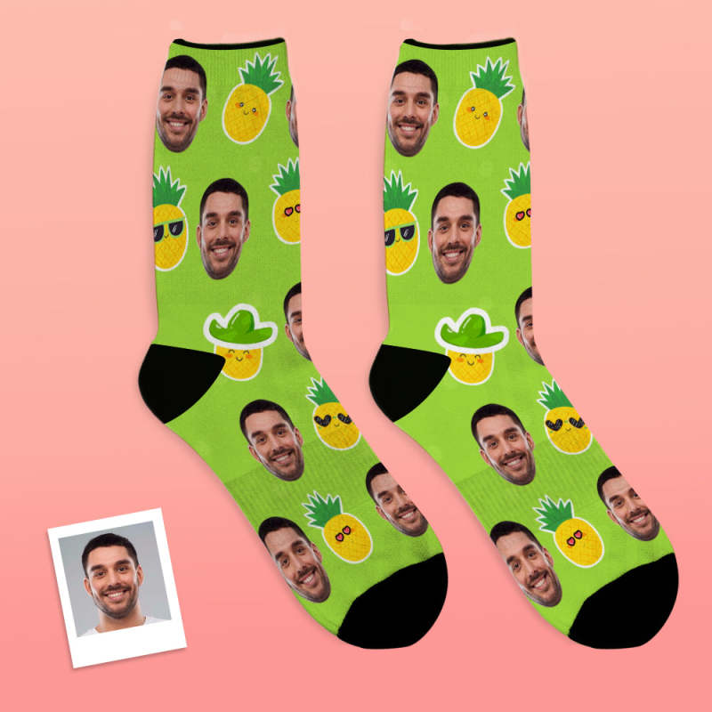 カスタム通気性フェイスソックス - 写真入れ可能なオリジナル靴下 - パイナップル柄