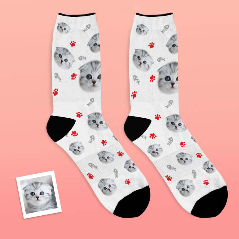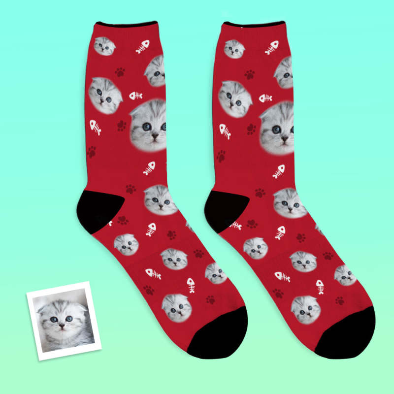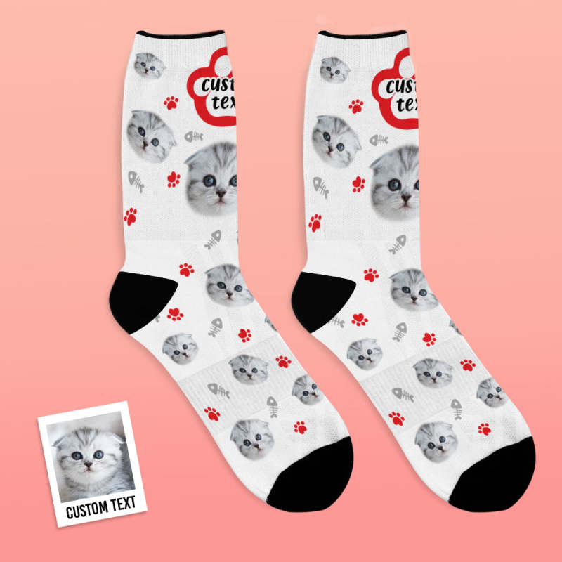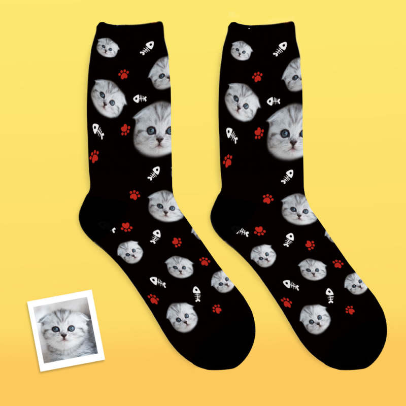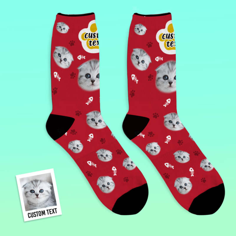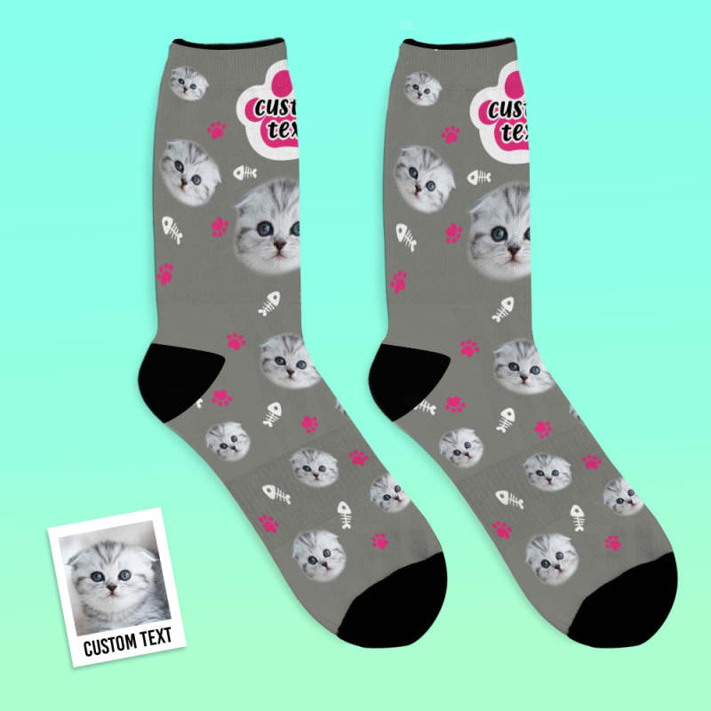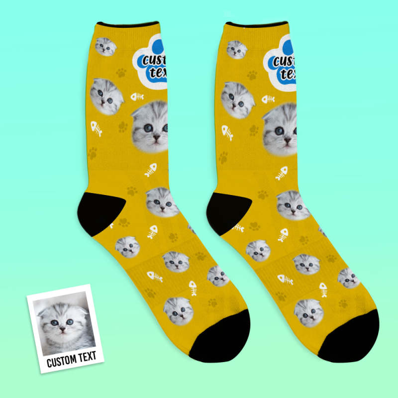 カスタム通気性フェイスソックス - 写真入れ可能なオリジナル靴下 - 可愛いネコグリーン