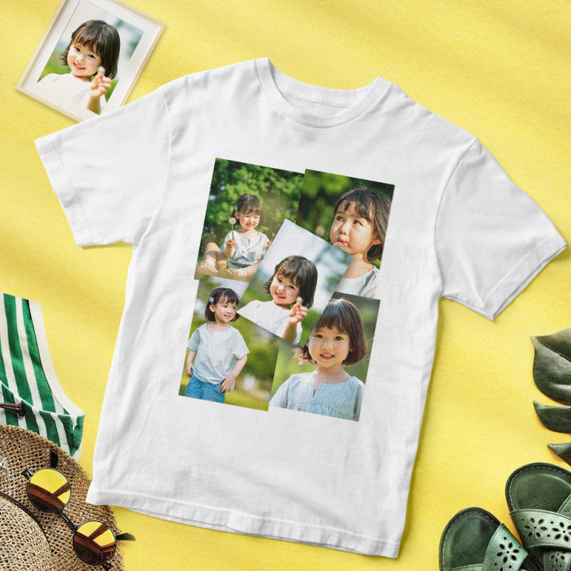 カスタムフォトTシャツ - 写真5枚入れ可能なオリジナルかわいい子写真T-SHIRTプレゼント
